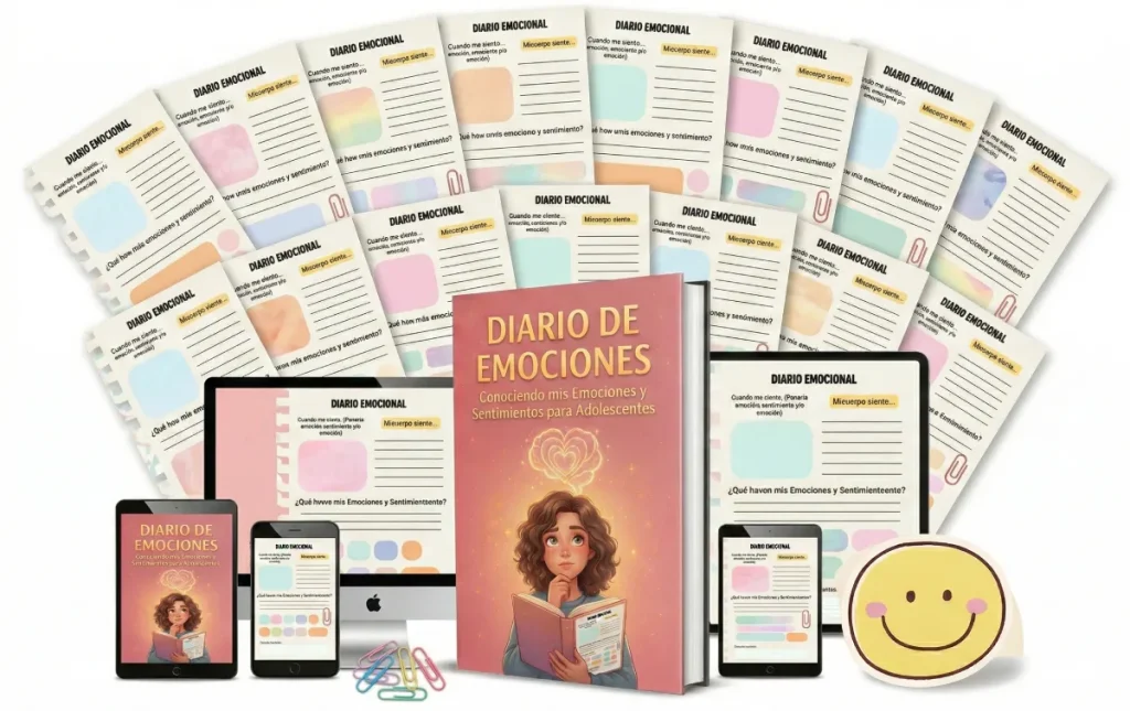 El Diario de Emociones para Adolescentes es una herramienta diseñada específicamente para que los jóvenes puedan identificar, comprender y manejar sus emociones de manera práctica.